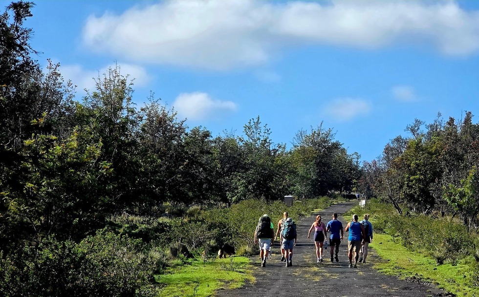 From the trailhead, walk south along the Vulcanite Road for 1.5 miles until you reach the beginning of the Cinder Cone Trail/Pu'u Wa'awa'a Cone Trail.
