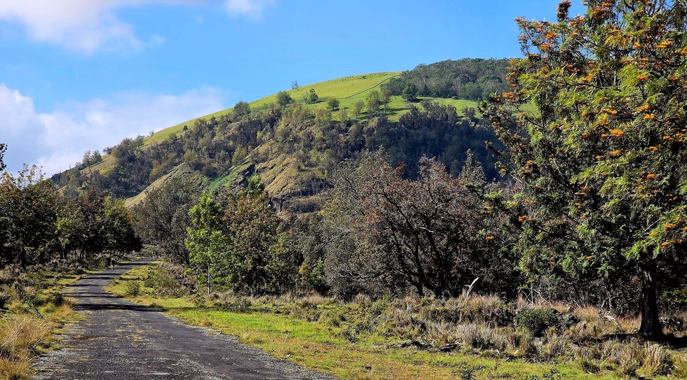 The cinder cone is an estimated 100,000-years-old, much older than the surrounding lava flows of between 3,000 and 5,000 years old. “It’s an amazing view from the top, with views of the 1959 lava flows from Mauna Kea, Mauna Loa, and Hualālai. Reforestation efforts over the past 20-years have included the plantings of 40-60 native species.