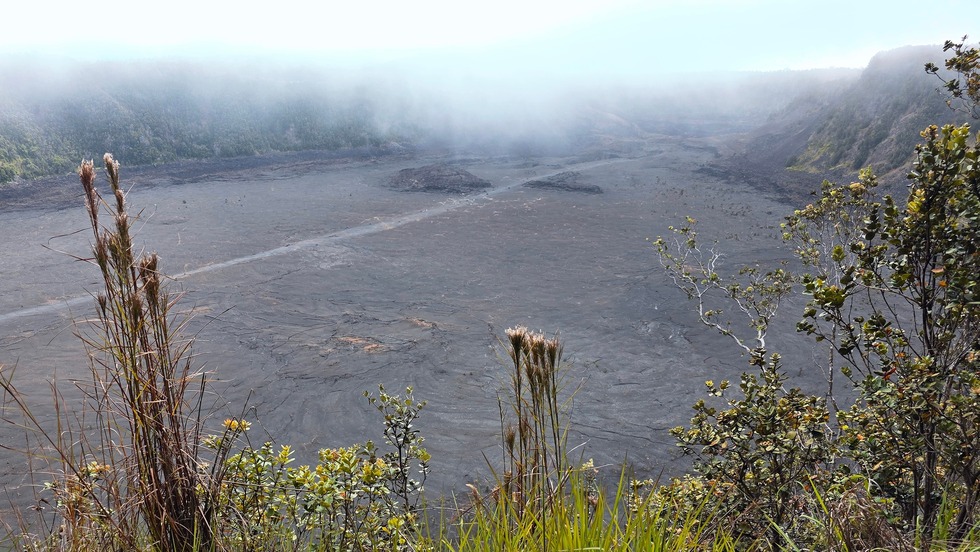 With no outlet from the crater, lava flooded Kīlauea Iki. During the first episode alone, 68 million tons of lava poured into the crater, creating a lake several hundred feet deep. By the time the eruption ended on December 20, another 18 million tons of lava were added to the crater, increasing the lake depth to over 400 feet.