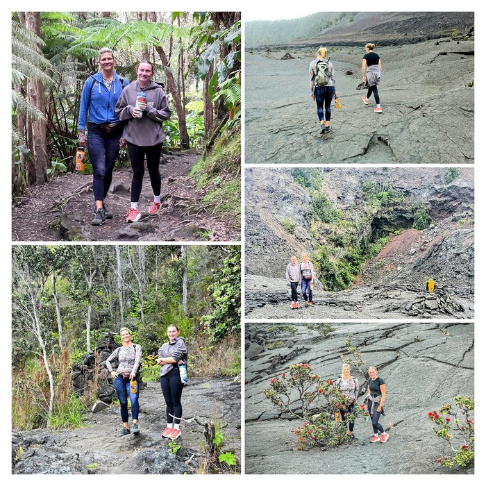 Right photos: on the floor, middle is where the 1959 eruption came out of. (Meaning "gushing hill" in Hawaiian, Puʻupuaʻi is a gigantic cinder cone that formed as a result of the towering 1,900 foot lava fountains during the eruption of Kīlauea Iki in 1959. As lava from these fountains cooled in the air, it fell back to earth as cinders and built up into the large mound that exists today. )