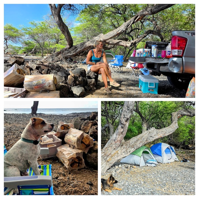What a great camping spot with shade and trees and sand and lava and cocktails of course. The blue and white tent was a double decker. Puja likes sitting on the chairs vs the others.