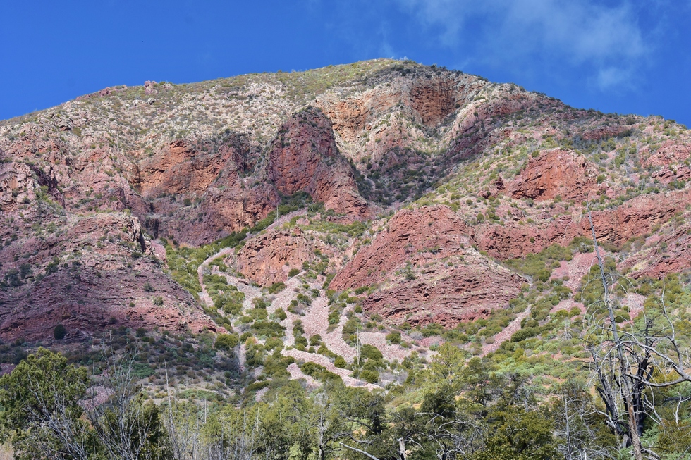 Spent a long time assessing the ridge on the right and whether or not there's a solid route. Had to get this close up, but I'm fairly certain that it goes sans climbing if following up the scree in the center before cutting across to the ridge and heading up. Maybe one day