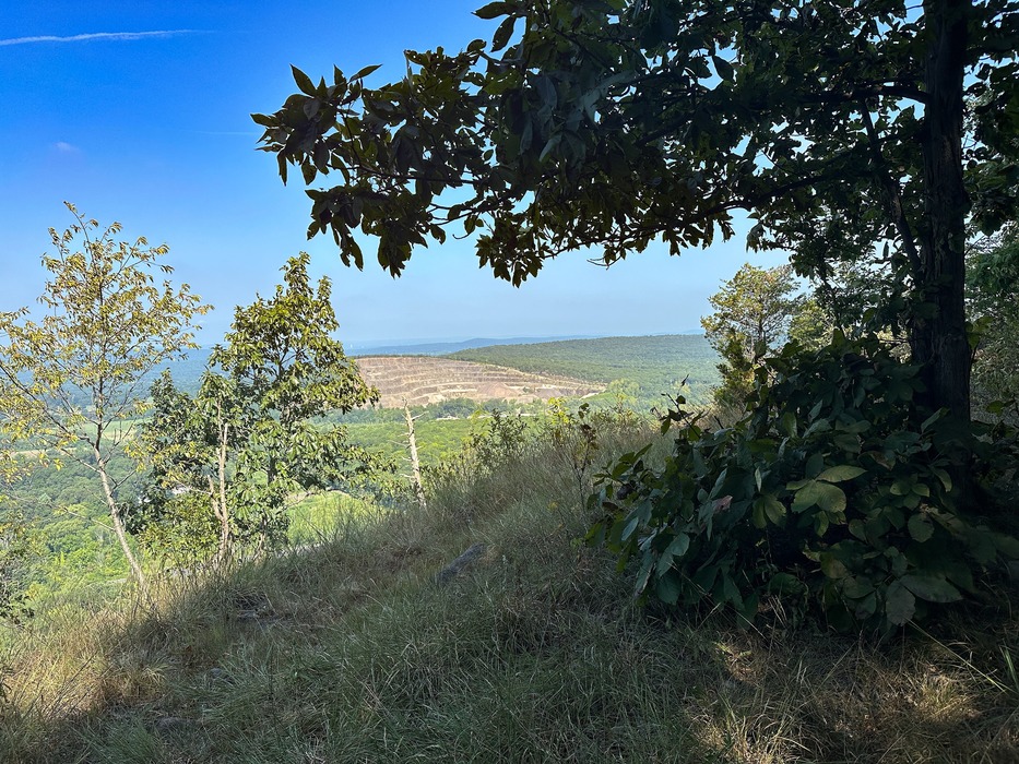 View of the quarry on Chauncy Peak and the long green ridge of Lamentation Mountain.