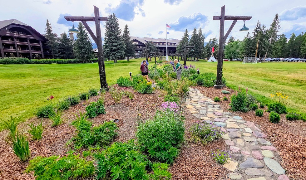 Glacier Park Lodge in East Glacier is unique due to its massive Douglas fir log construction, particularly the 40-foot tall, 40-inch diameter columns supporting the lobby. It's also notable for its historic significance as a Great Northern Railway hotel and its location at the foot of Dancing Lady Mountain, offering views of the mountains and gardens. The lodge also features a nine-hole golf course, a swimming pool, and a day spa, unusual for park lodges.