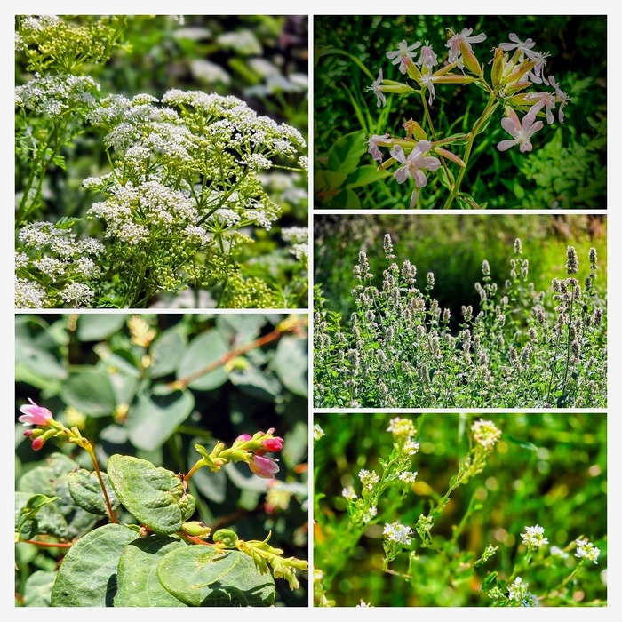 Middle: Catnip (Nepeta cataria), a perennial herb from the mint family.