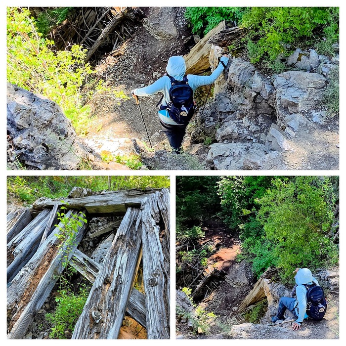 This area was a little tricky. Kathy took the right side while Wendy and I took the side closest to the creek. And like I said, this must have been quite the route for the train. I suspect this was a sort of bridge here based on the timbers.