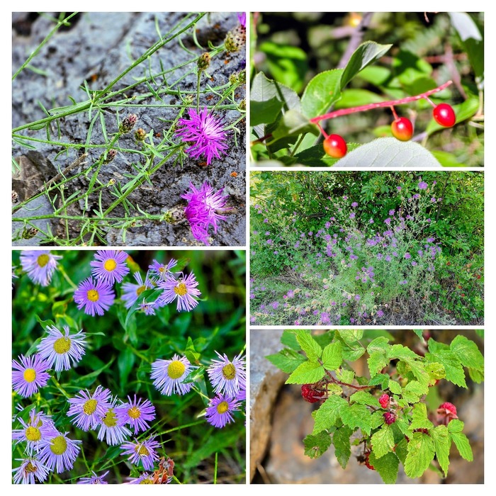 UL and Middle: Spotted Knapweed (Centaurea stoebe), an invasive plant species.