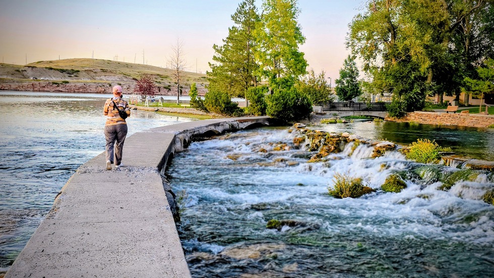 The muskrat show was on the left in the Missouri River. After it was over, we continued eastward. The fish hatchery part is just over there. The Springs has been carbon-dated to be about 3000 years old.