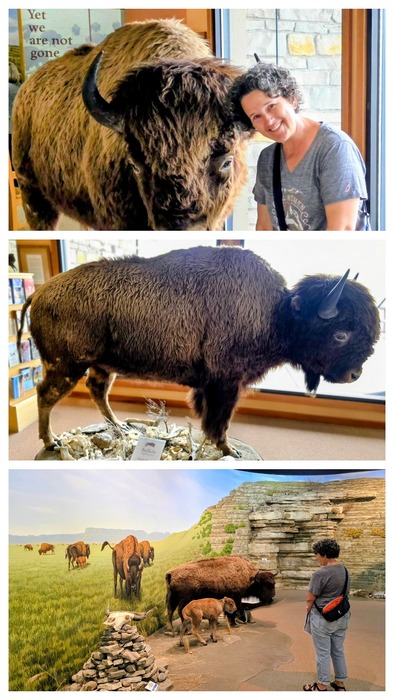 Wendy posing with her new friend she met at North America's largest bison cliff jump.