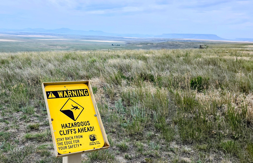 I don't think this sign was up 1000 years ago for the bison. This is looking to the WSW. That is Square Butte on the right which is where I thot this Buffalo Jump was located.