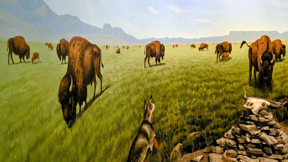 The visitor center, where this exhibit is located, features displays and hands-on activities that explain the relationship between bison and the Northern Plains Tribes.