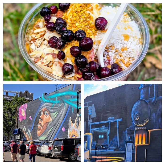 Day Three in Gt Falls. Top is some of the huckleberries (gold) Wendy bot at the Farmers Market to put on our Acai bowl we got at the Farmers Market. There were two hutterite colonies selling their vegetables and they grow some of the best!