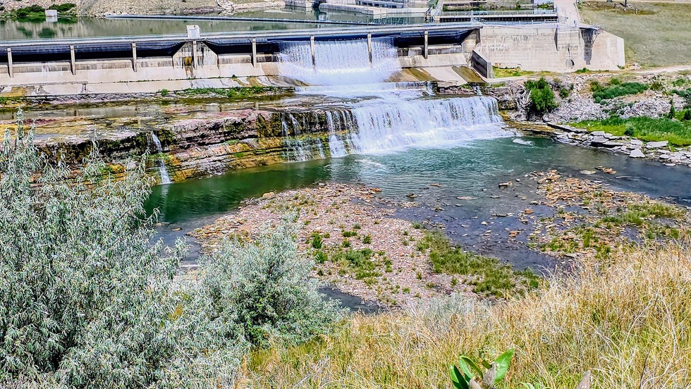 And Captain Lewis continues to describe it as it was: "here the river pitches over a shelving rock, with an edge as regular and as streight as if formed by art, without a nich or brake in it; the water decends in one even and uninterupted sheet to the bottom wher dashing against the rocky bottom rises into foaming billows of great hight and rappidly glides away, hising flashing and sparkling as it departs the sprey rises from one extremity to the other to 50 f."