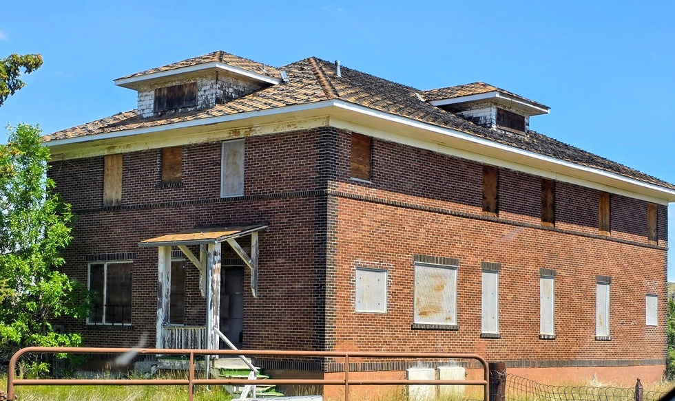 Just below Morony Dam east of Great Falls, Montana is the remnants of "Ragtown", once a bustling community of about 500 housing dam builders on the Backroads in the late 1920s. All that's left is this brick building, a few fire hydrants and concrete paths covered by grass/brush. A couple miles downstream is Sulphur Springs, its waters reputedly healing a "deathly ill" Sacajawea during the Lewis & Clark Expedition.