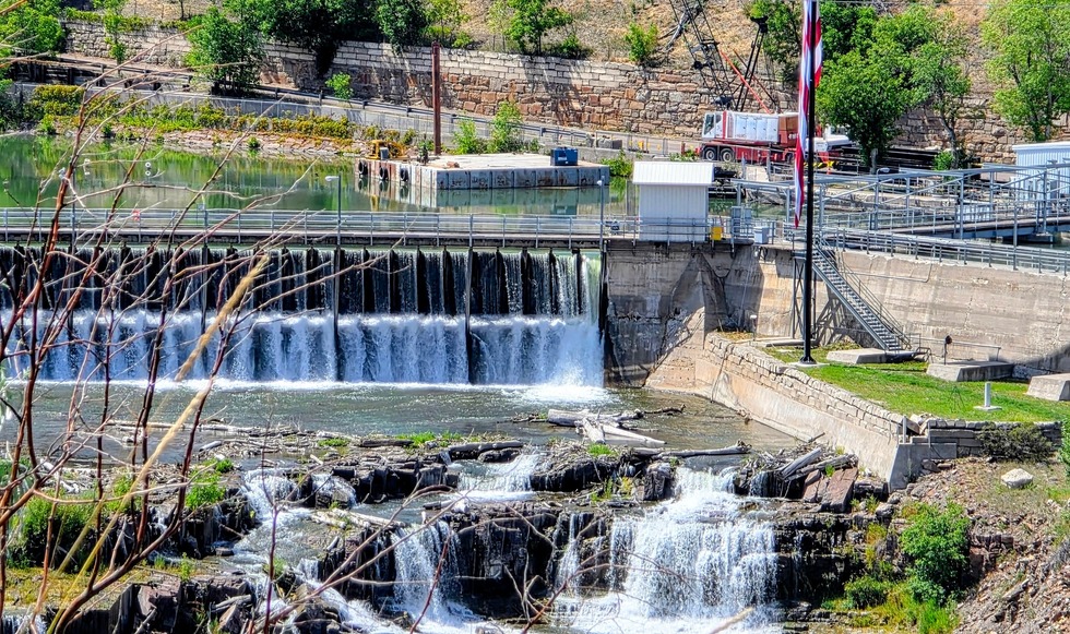 Black Eagle Falls: The uppermost falls of the Great Falls of the Missouri River are located west of this point.