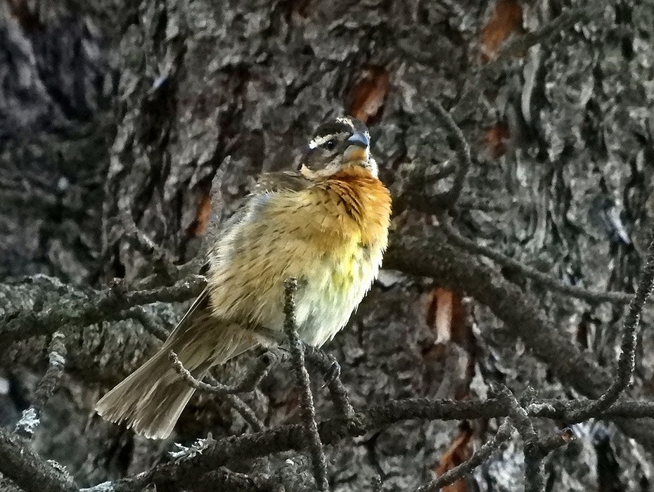 I think that's Momma. She either just had a bath or the nesting is really messing up her plumage.
