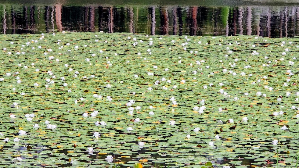 Talk about good timing. I've never had the pleasure of seeing so many blooming water lillies. I also like the reflection in the water above them.
