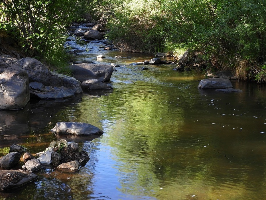San Antonio Creek. Looks a lot different from what it did winding through the grasslands of Valle Caldera.
