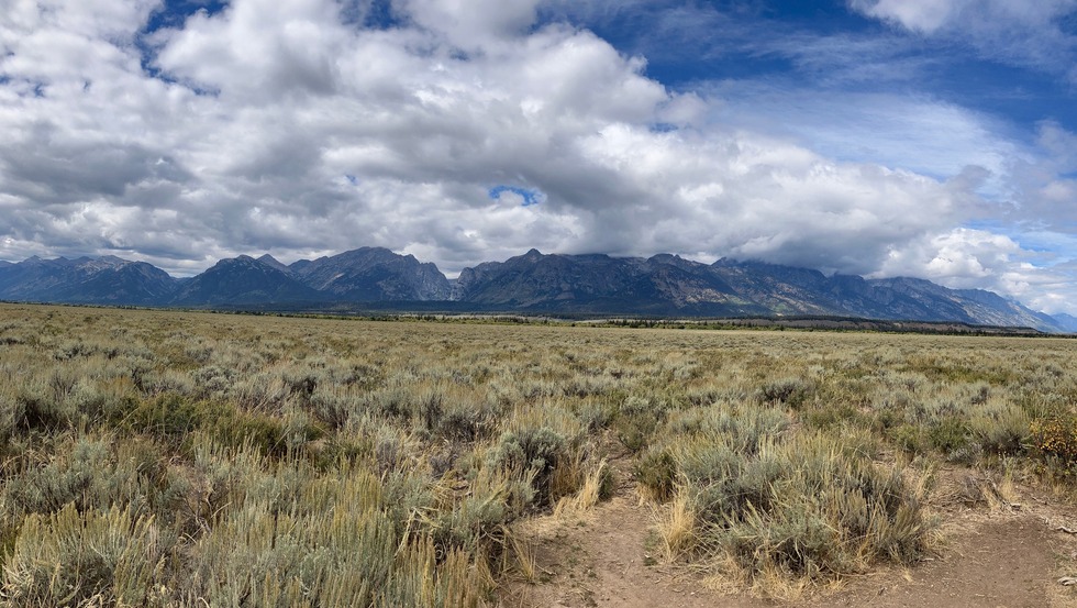 Early view of clouds over the Teton Crest from Albright View