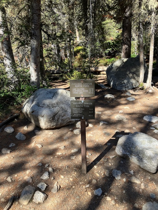 Trail split at the Cascade Canyon North/South Fork intersection
