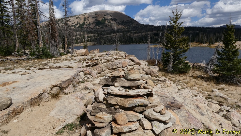 A rock cairn at the South end of Long Lake with Mount Watson in the background. 60.80° F