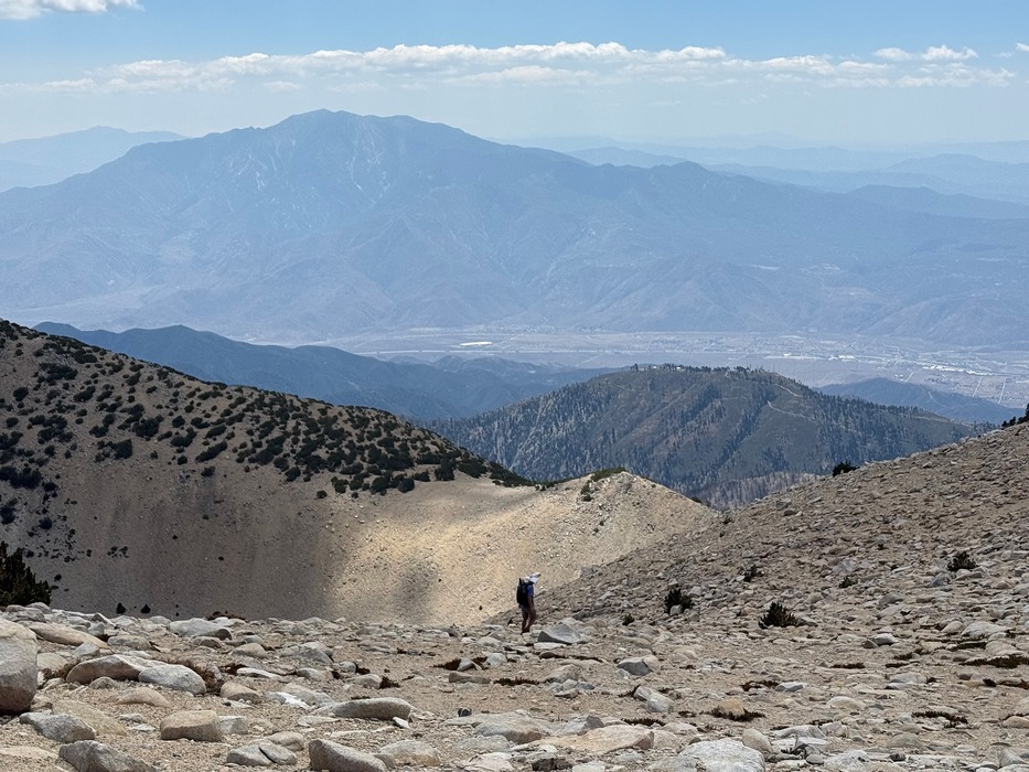The off trail route as we cut the corner. Chumley leads the way and San Jacinto is across the valley