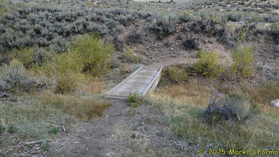 A footbridge over a now-dry drainage along the Rocky Top Trail. 54.68° F