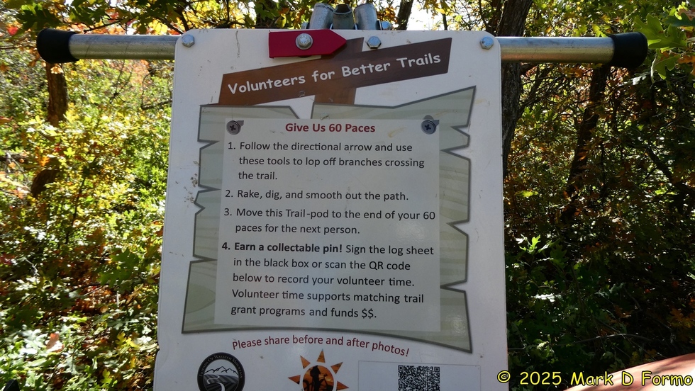 'Volunteers For Better Trails' trail-pod sign along the Out & Back Trail. 54.20° F