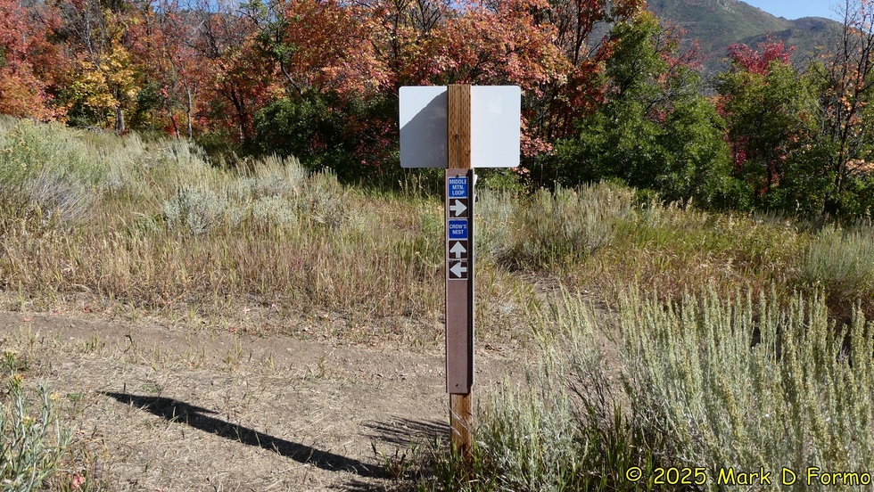 The intersection of the Out & Back, Crows Nest and Middle Mountain Trails. 58.26° F