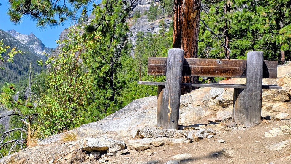 One of the three benches we would be able to use along the way. AND, they all have a view. This is looking west.