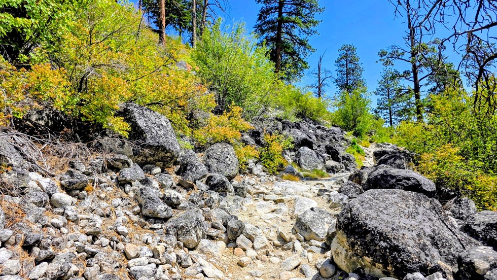 in this area were a bunch of these black granite rocks, the only place I saw so many. I was thinking maybe an avalanche occurred.