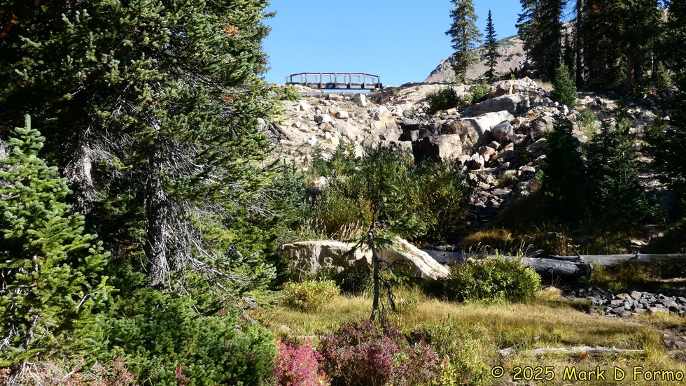 View of the footbridge adjacent to Wall Lake from Wall Lake Trail #229. 53.42° F
