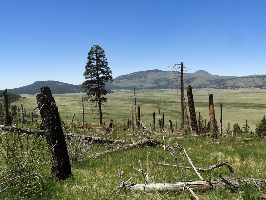 On the trail. Burn on both sides of the beginning of the trail with one lone survivor.