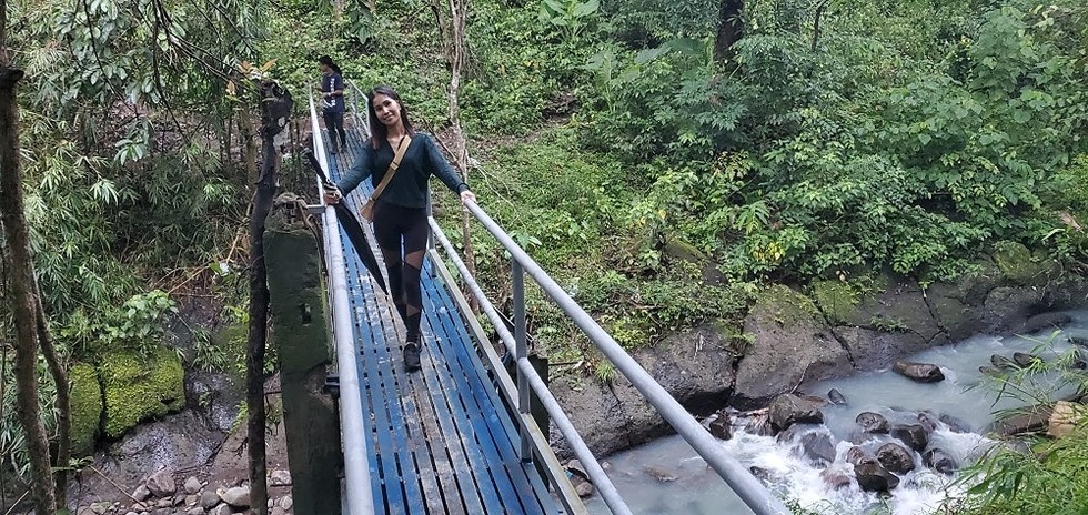 on bridge #2. unfortunately, the nearby primitive bamboo bridge was broken and this is the boring replacement.