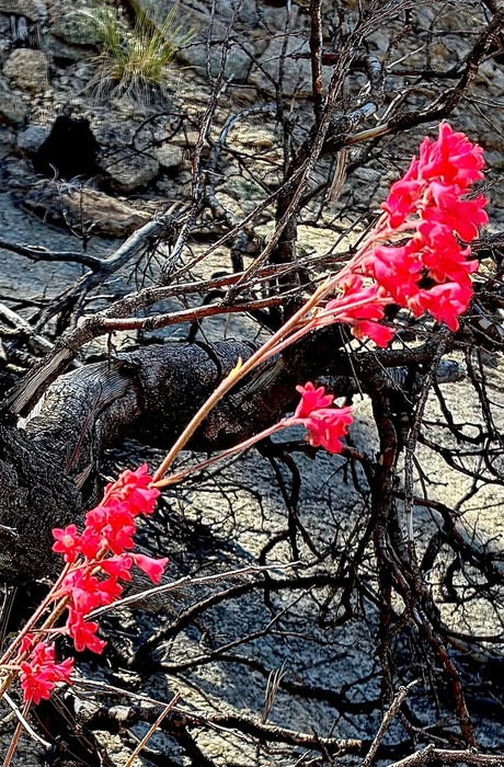 Keeping the coral spirit alive, this flower photo-bombed a perfect focus of the veins on the deadfall.