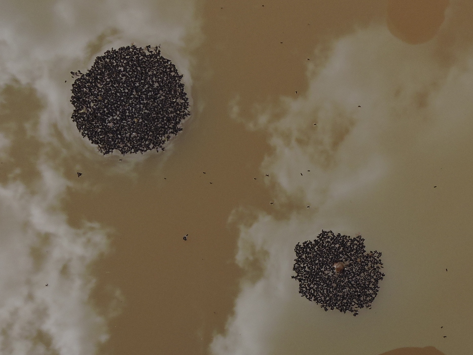 Spotted these little quarter size groups in a puddle. I like the cloud reflection. In 24 hours they will be gone.