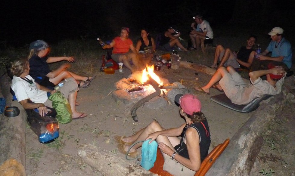 7:21PM sitting around the campfire, passing the libation and conversation all around.