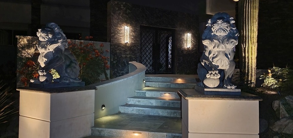 nice architecture with lion statues in front. looks like a castle.