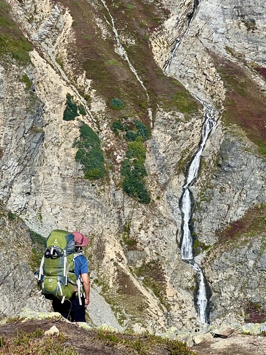 Looking down on the strong afternoon drainage from Sahale Glacier to the (unseen) Doubtful Lake below.