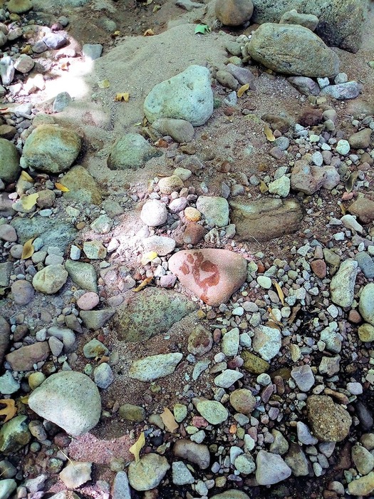 Okay, what animal left this wet paw print? (Yikes. We must have missed by a minute or two.)