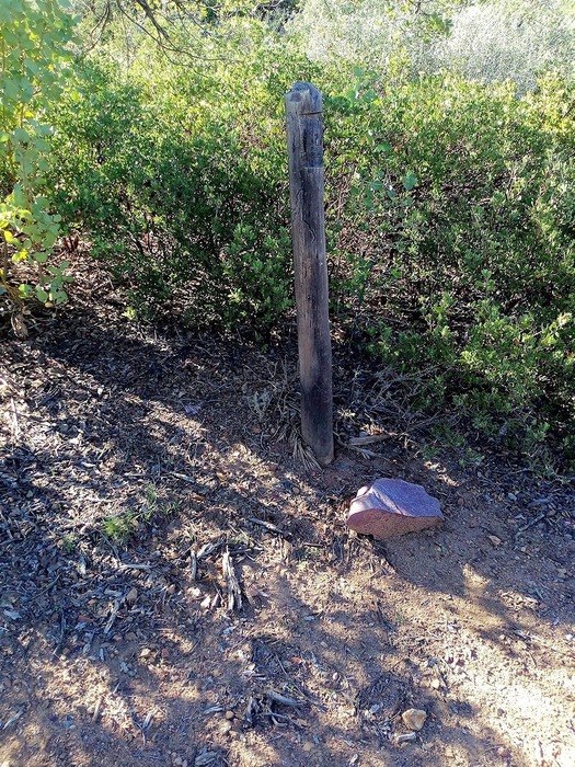 Hmmm... There used to be a metal post here before that showed # 42 to the west and #288 to the east. (See my foto from two years ago, [ photo ] .) I have no idea what happened to the metal post. Well, one of the rocks is stll here.