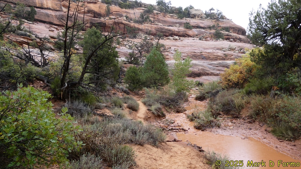 Water flow along the Mule Canyon Trail. And, yup, it's raining again. 56.84° F