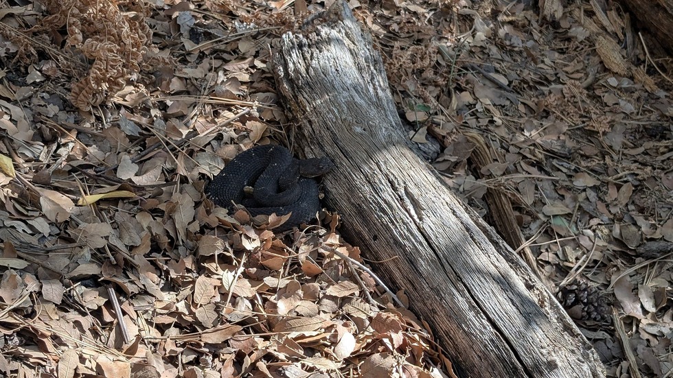 about 6 feet from the spring this snake was chillin. It never moved but later we found it was alive