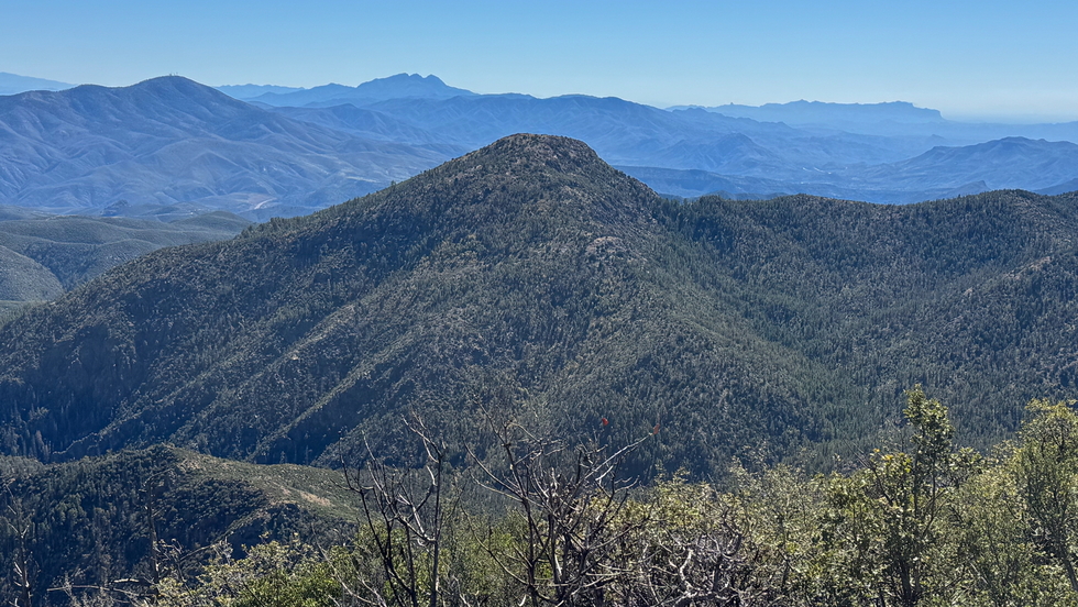 Looking southish. Left to right, Pinal just out of the frame ... then Ord, 4p, Peeley foreground and Boulder behind it, and finally Weavers and the full ridgeline.