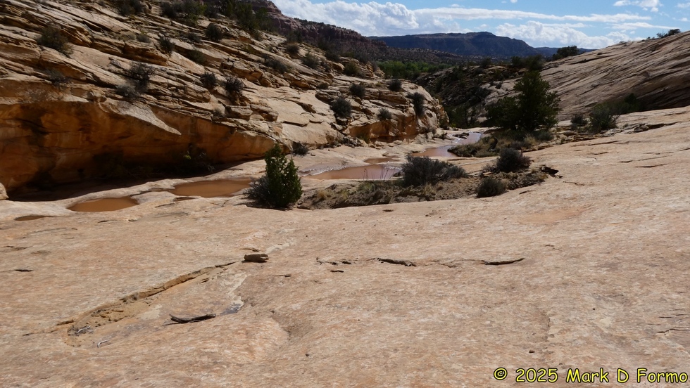 Pools of water while heading down the slick-rock toward what may be a pour-off? (it wasn't) 68.78° F