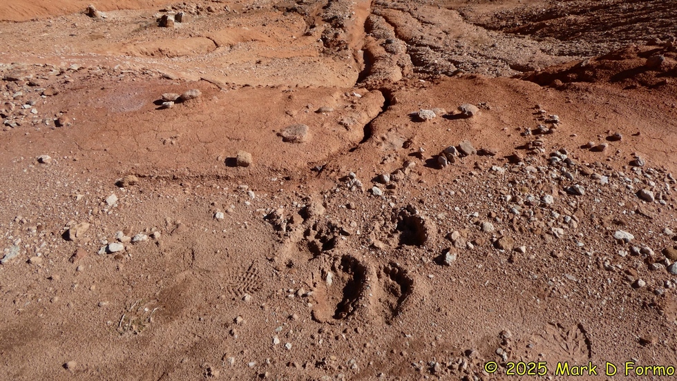 The mountain lion prints lead to a steep drop-off, where it appeared to have dropped down the steep slope into a smaller canyon. 69.62° F