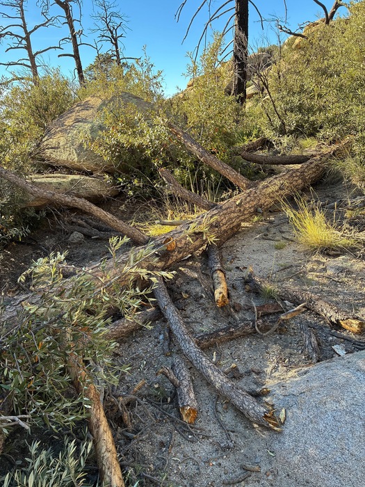 On my first trip 6 weeks ago there was maybe a half dozen dead fall to negotiate. Those are gone, this is one of four recents. This one was obviously easy to negotiate.