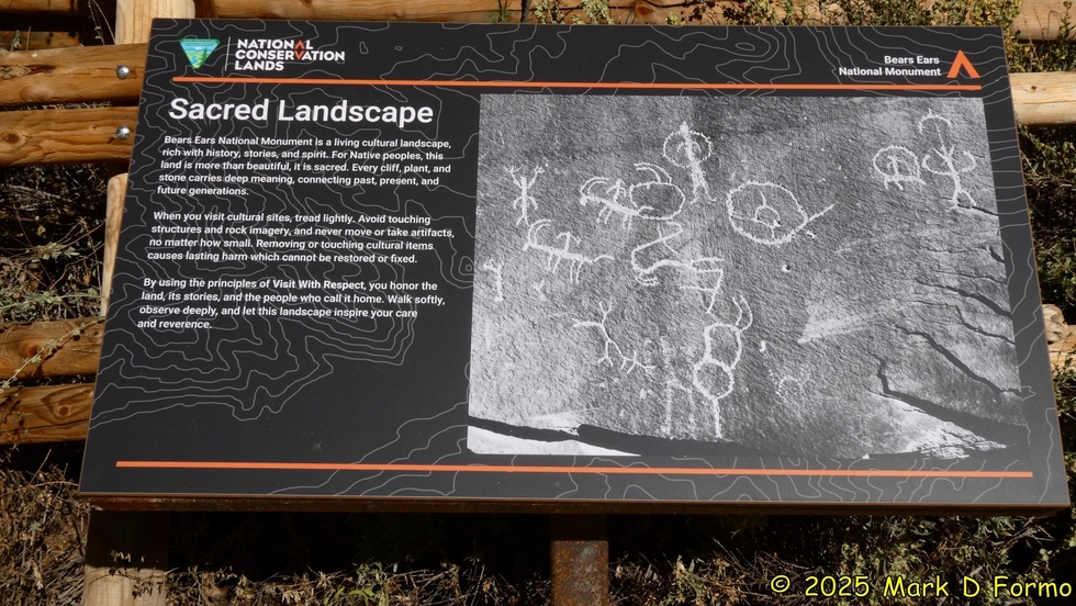 Sand Island Petroglyph kiosk panel along the Bluff River Trail. 75.02° F
