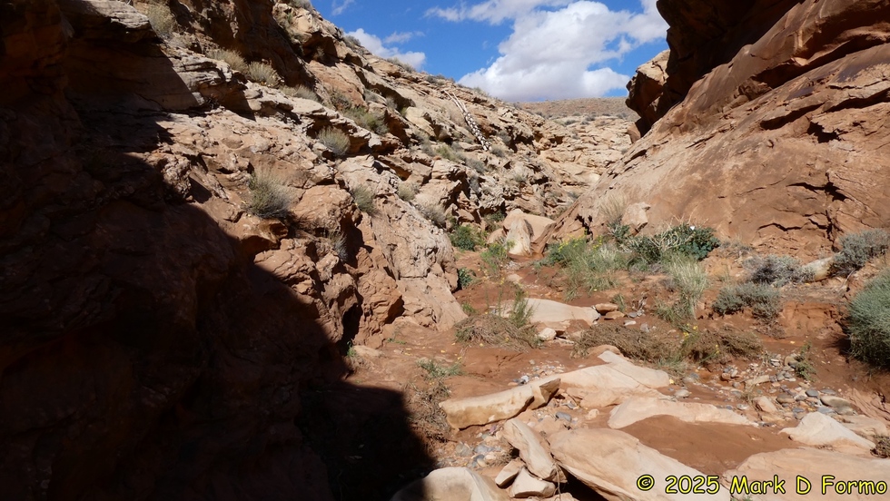 Into the narrow canyon along the Bluff River Trail. 74.66° F