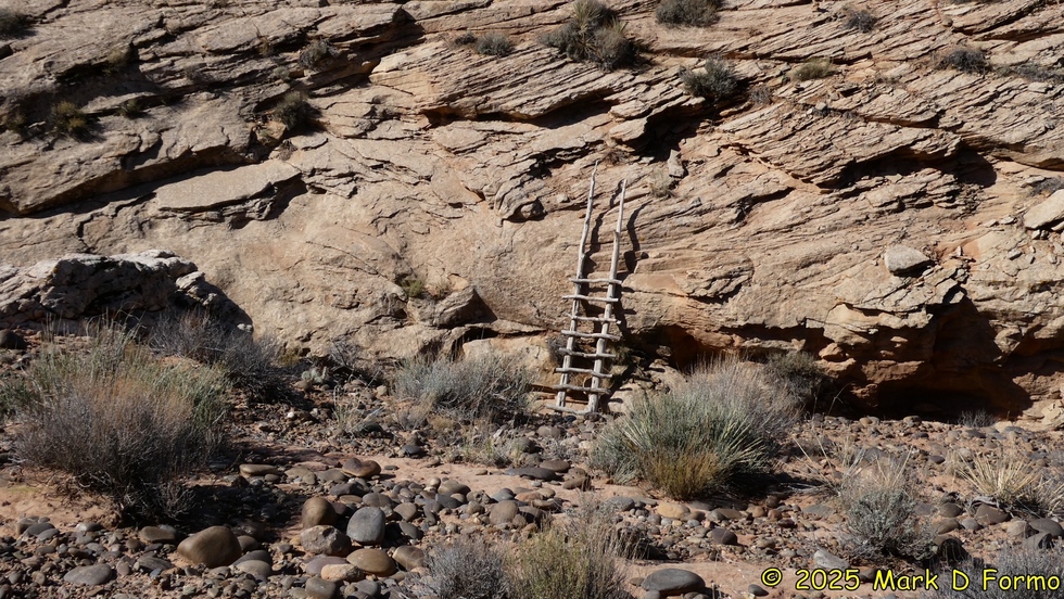 The sketchy-looking wooden ladder on the canyon wall along the Bluff River Trail. (Thankfully it was stout and stable) 70.52° F